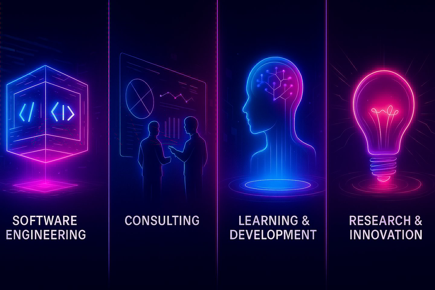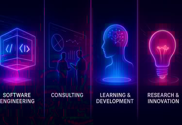 We believe in bold innovation — developing intelligent software solutions and digital strategies that drive transformation and efficiency. Equally, we value wise execution — grounded in research, education, and deep industry understanding that ensures sustainable growth and long-term success. Through our consulting expertise, we guide organizations toward clarity and competitive advantage. Through education and research, we nurture talent, curiosity, and the next generation of thinkers. Through cybersecurity, we protect digital trust and resilience. And through marketing innovation, we connect brands to audiences with authenticity and impact. Every initiative we undertake reflects our core belief: that progress is most powerful when it is both bold in vision and wise in action .